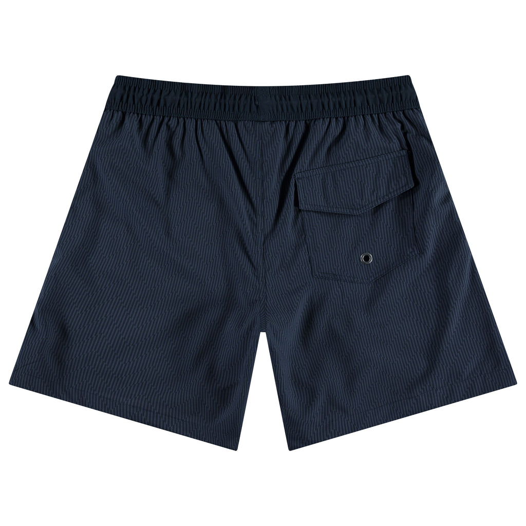 - Our swim shorts come equipped with two side pockets and a back pocket outfitted with a velcro tab.
